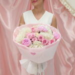 Гортензия - 4 шт. Кустовая роза - 3 шт. Упаковка - 1 шт. Пион Розовый - 3 шт. Стифа - 1 шт. white o'hara - 2 шт.