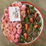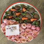 Клубника в шоколаде - 13 шт. джульетта роза пионовидная - 5 шт.