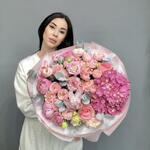 Роза - 3 шт. Эустома - 4 шт. Бомбастик роза - 5 шт. пионы - 3 шт. Гортензия Премиум Микс - 1 шт.