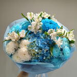 Альстромерия - 5 шт. Гортензия - 1 шт. Хризантема кустовая - 5 шт. антонов крашеный - 2 шт.