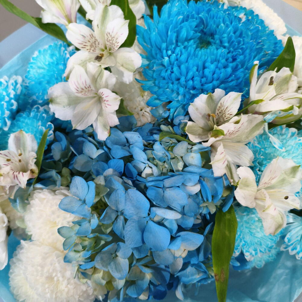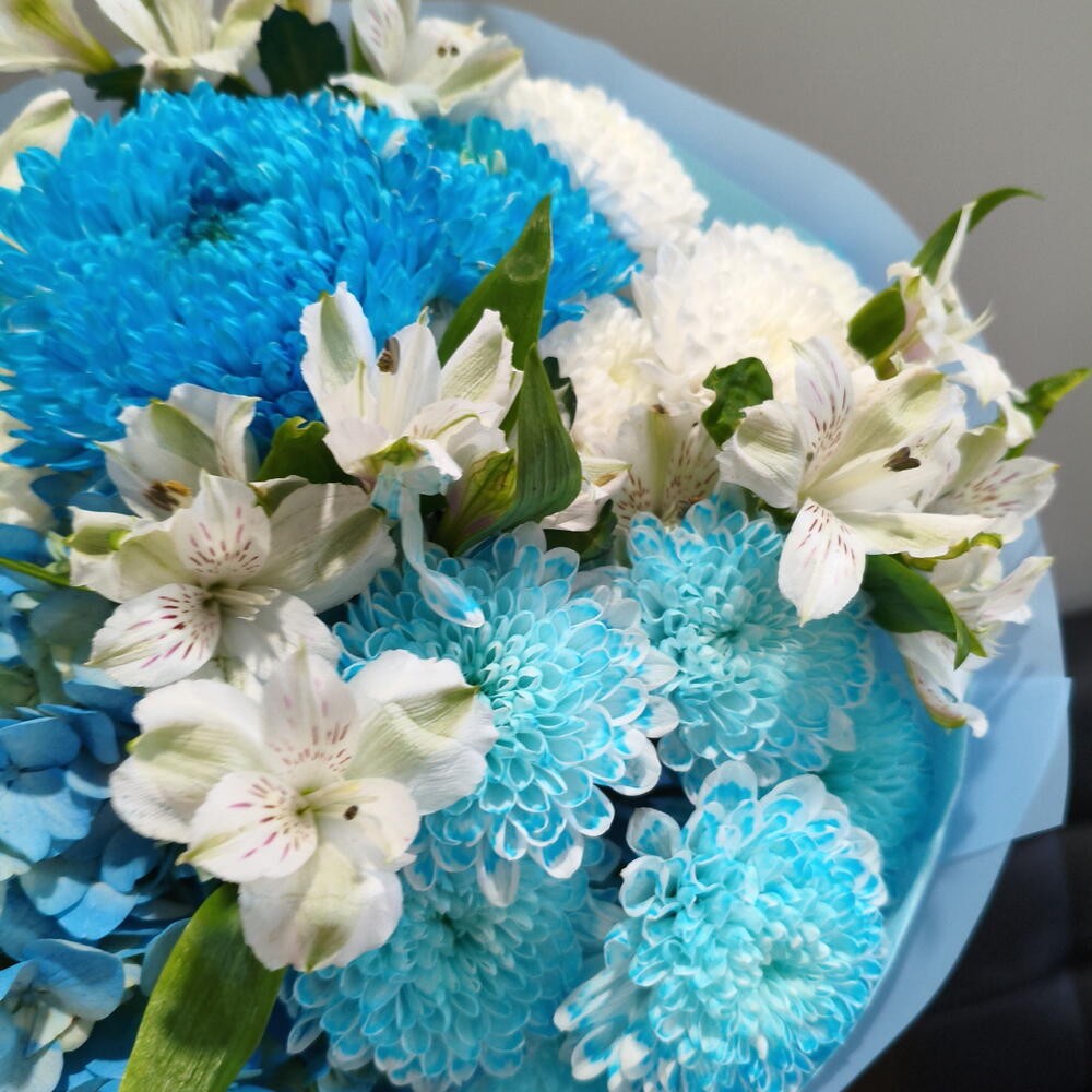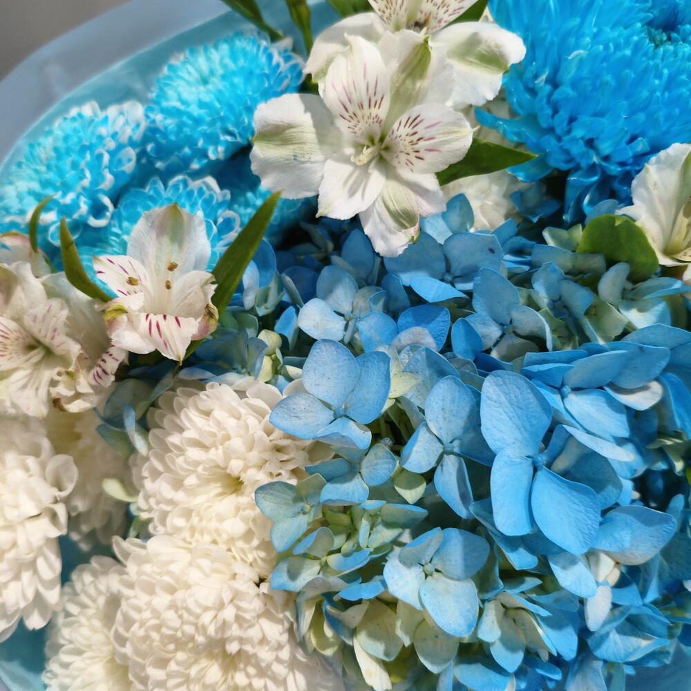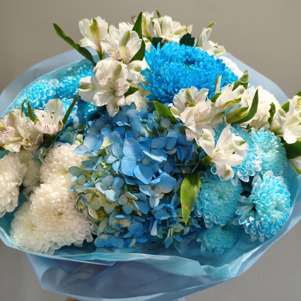 Альстромерия - 5 шт. Гортензия - 1 шт. Хризантема кустовая - 5 шт. антонов крашеный - 2 шт.