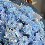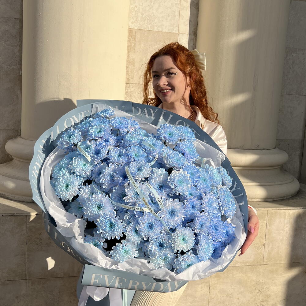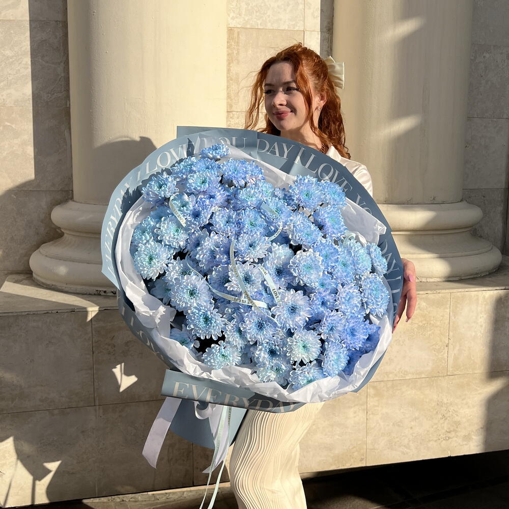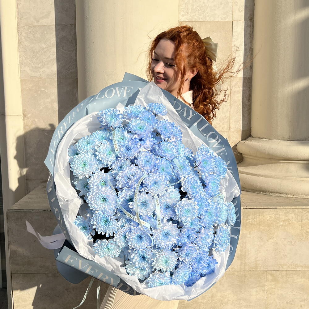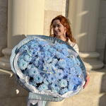 это букет, в котором живёт тишина, лёгкость и мечта. Его нежные голубые оттенки словно сотканы из облаков и первых лучей утреннего света. Он убаюкивает взгляд, настраивает на спокойствие и словно приглашает на прогулку по небесной линии горизонта. Этот букет — про чистые чувства, душевное равновесие и красоту, которая не требует громких слов. Идеален для тонкой, светлой души, любящей смотреть на мир сердцем.