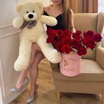 Счастье — это вот такой вот сетик! ❤️🎁 Внутри — всё, что нужно для вау-эффекта: 🌹 Коробка с французскими розами — нежные, ароматные, как признание в любви. Плюшевый мишка и 15 (15!) Шаров сердец. Она точно останется в восторге