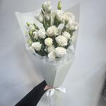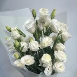 Бант - 1 шт. Пленка матовая - 3 шт. эустома белая - 5 шт.