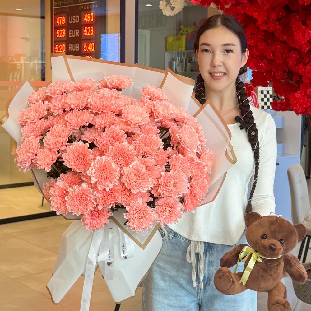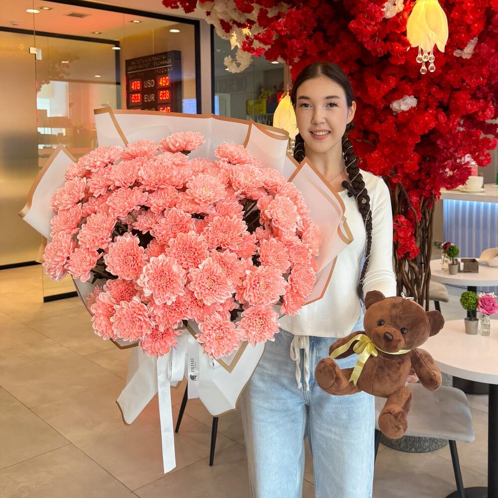 Хризантема кустовая - 11 шт. мишка - 1 шт.