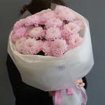 Этот изысканный монобукет из пяти свежих хризантем подарит ощутимое упоение красотой и свежестью природы. Букет аккуратно опутан двумя дизайнерскими упаковками, что добавляет ему еще больше элегантности и утонченности. Этот букет подойдет как прекрасный подарок в любой ситуации и внесет в домашний интерьер нотки особой изюминки.