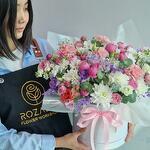 Гипсофила - 1 шт. Маттиола - 2 шт. Хризантема кустовая - 2 шт. Эустома - 5 шт. Диантус - 5 шт. Коробка шляпная - 1 шт. Спрей роза - 3 шт.