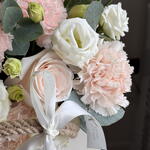 Роза - 5 шт. Эустома - 3 шт. Диантус - 13 шт. Эвкалипт Микс - 11 шт.