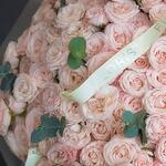 Эвкалипт - 10 шт. Упаковка - 3 шт. Лента атласная - 3 шт. Аквабокс - 1 шт. пакет переноска - 1 шт. витамины для цветов - 1 шт. bombastic spray rose - 51 шт. открытка бесплатная на выбор - 1 шт.