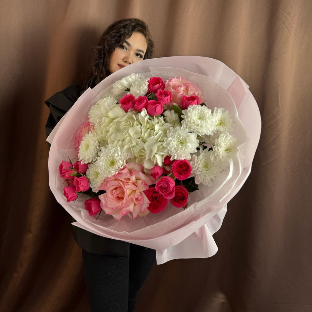 Гортензия - 1 шт. Хризантема кустовая - 3 шт. Французская роза - 3 шт. кустовая роза софи беби - 3 шт.