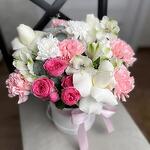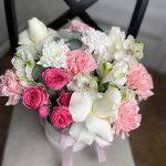 Альстромерия - 2 шт. Хризантема кустовая - 1 шт. Кустовая роза - 2 шт. Гвоздика - 5 шт. розы - 5 шт.