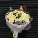 Букет из 15 белых роз. Лаконичный и аккуратный вариант для любого повода.