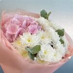 Гортензия - 1 шт. Хризантема кустовая - 3 шт. Эвкалипт - 3 шт. Упаковка дизайнерская - 2 шт.