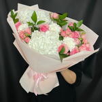 Гортензия - 2 шт. Рускус - 5 шт. Роза - 7 шт. Кустовая роза - 4 шт. Гвоздика - 3 шт.