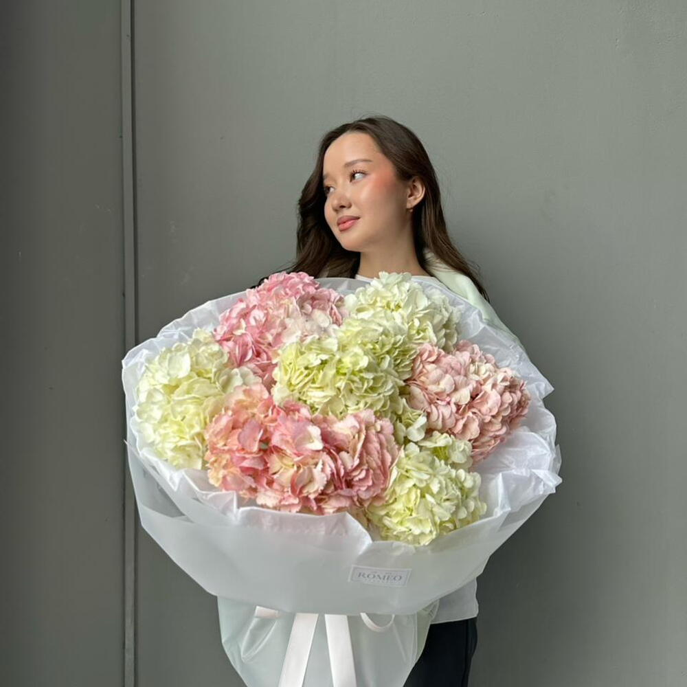 Нежный букет из 7 гортензий