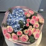 Гортензия - 1 шт. Роза кустовая - 8 шт. Эвкалипт - 4 шт.