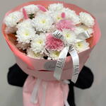 Хризантема кустовая - 5 шт. Диантус - 2 шт. Лагурус (сухоцвет) - 3 шт.