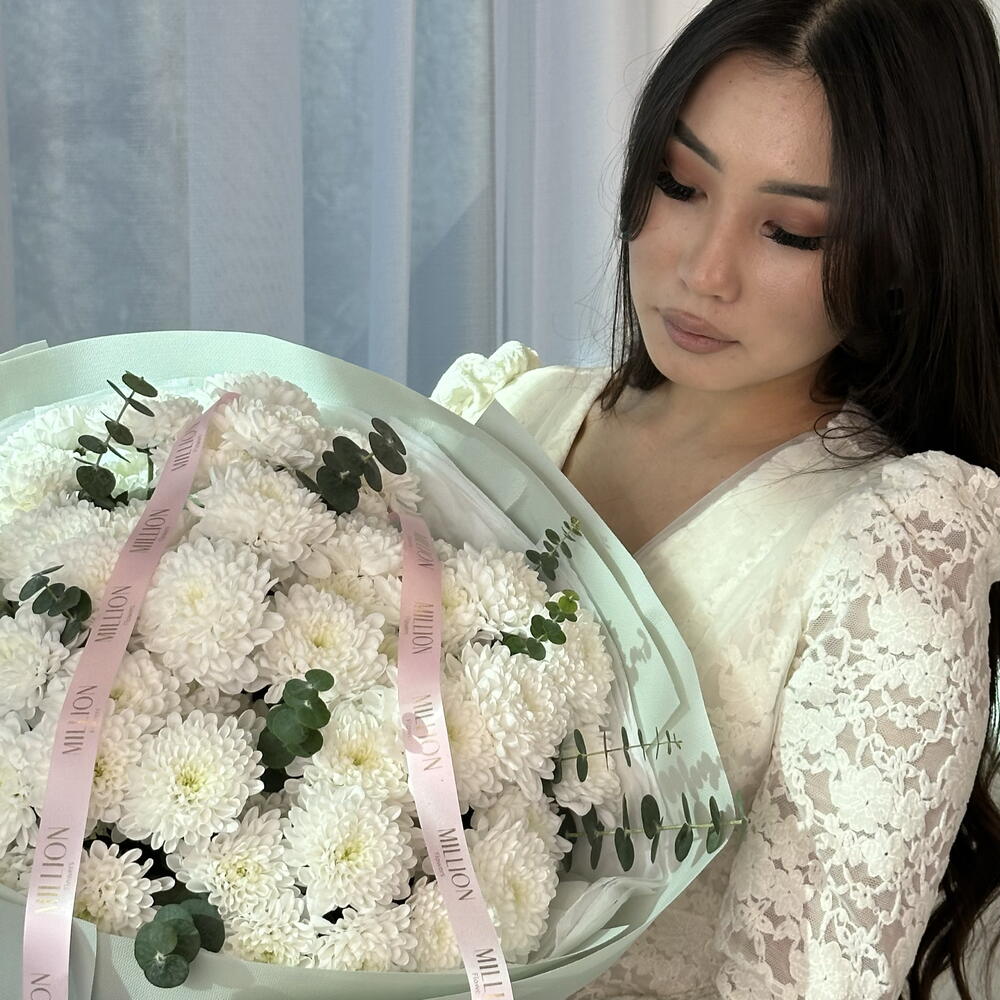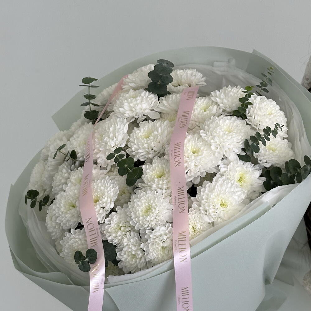 Букет из свежих хризантем Яркий и объёмный букет из свежих хризантем — символ тепла, заботы и искренних пожеланий. Пышные соцветия создают насыщенную, выразительную композицию, которая долго сохраняет свежесть и радует своей красотой. Флористы Million.floral собирают каждый букет вручную перед доставкой, используя только свежие цветы высокого качества. Аккуратная упаковка подчёркивает форму букета и делает его стильным подарком для любого повода.