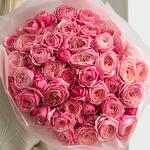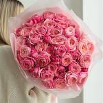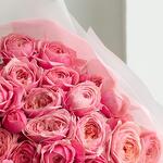 Лента атласная - 2 шт. Оформление - 3 шт. Дизайнерская упаковка - 4 шт. silva pink кустовая роза - 29 шт.
