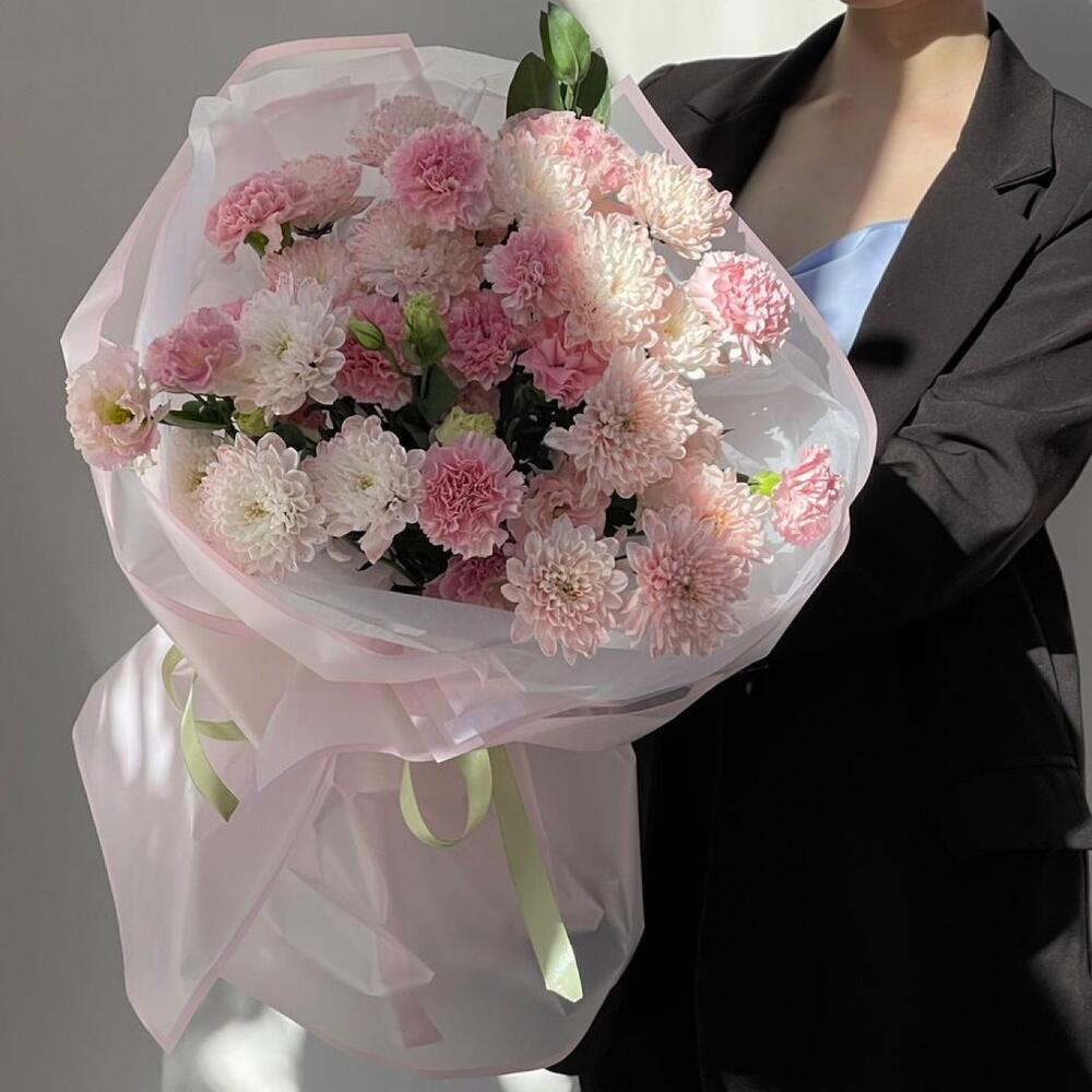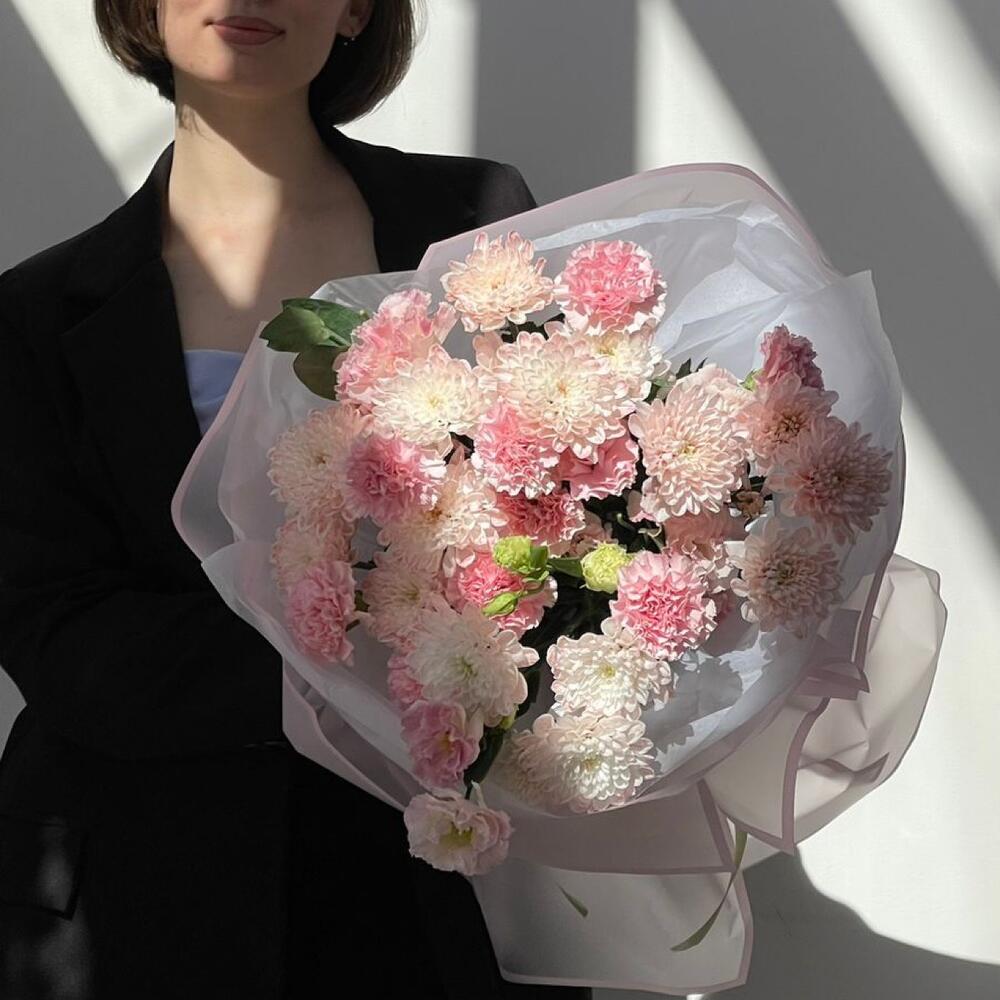 Лизиантус - 3 шт. Хризантема кустовая - 4 шт. Диантус - 13 шт.