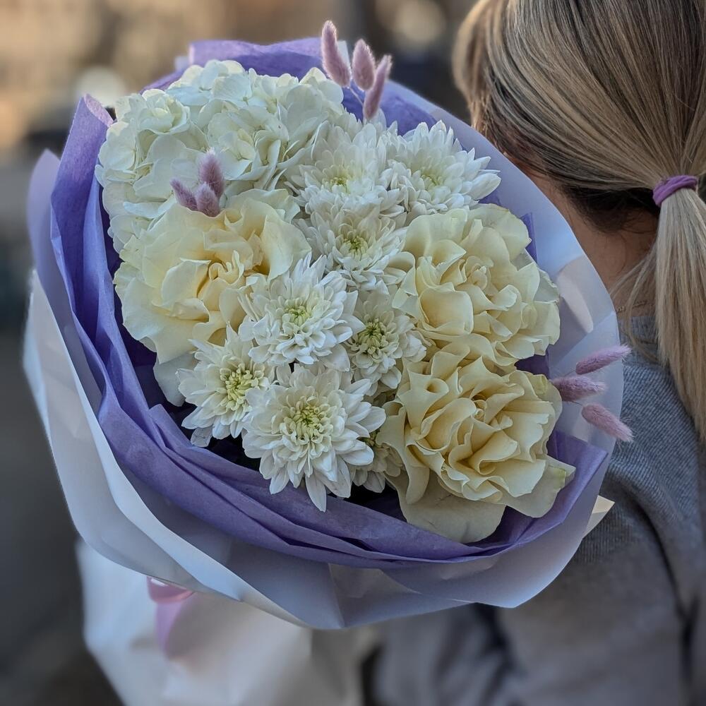 Нежный букет с гортензией "Сиреневый коктейль" S