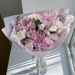 Эвкалипт - 1 шт. Хризантема одноголовая - 3 шт. Диантус кустовой - 4 шт. Лагурус - 9 шт.