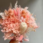Гортензия - 3 шт. Папоротник - 5 шт. Аспарагус - 1 шт. Пшеница - 15 шт. Лагурус - 54 шт. кардус - 3 шт. сафлор - 10 шт. хиллфлаур - 1 шт.