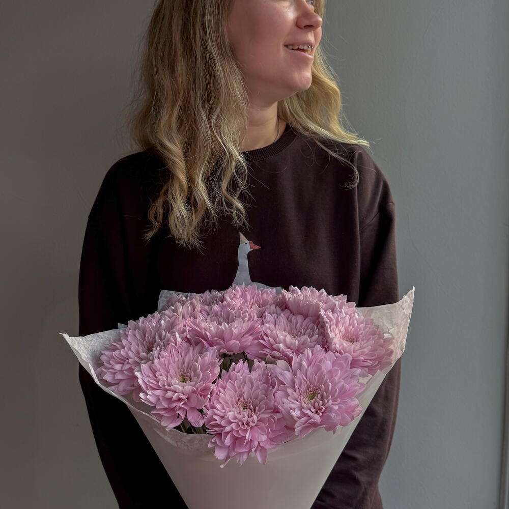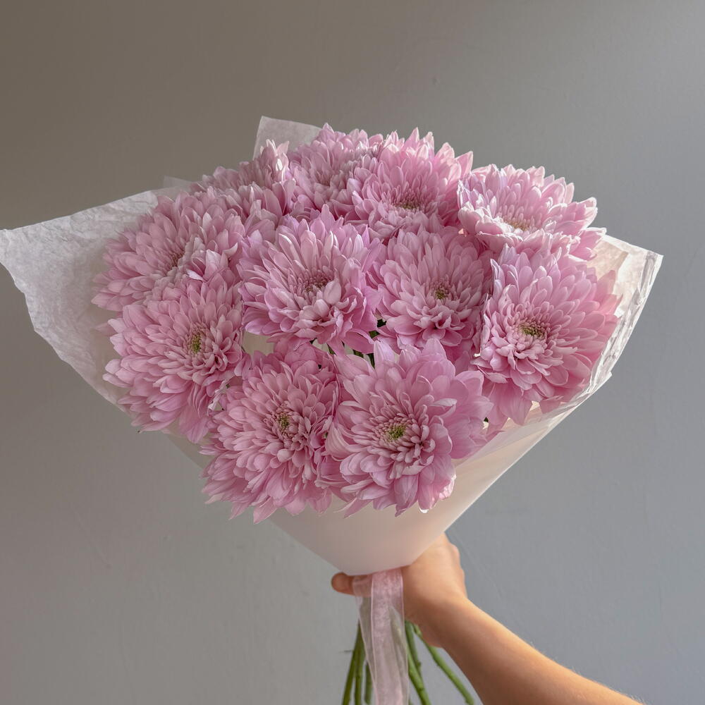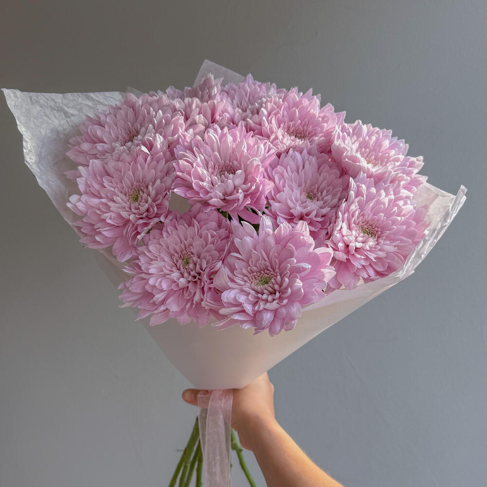 Нежный букет с одноголовой хризантемой