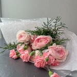 Диантус - 3 шт. Ранункулюс - 5 шт. Туя - 2 шт.
