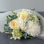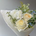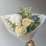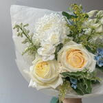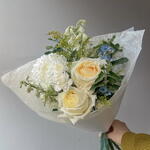 Дельфиниум - 2 шт. Солидаго - 1 шт. Хризантема - 1 шт. Оксипеталум - 3 шт. Диантус кустовой - 1 шт. роза кендллайт - 2 шт.