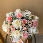Гортензия - 1 шт. Роза - 9 шт. Гвоздика - 5 шт. кустовые розы - 3 шт.