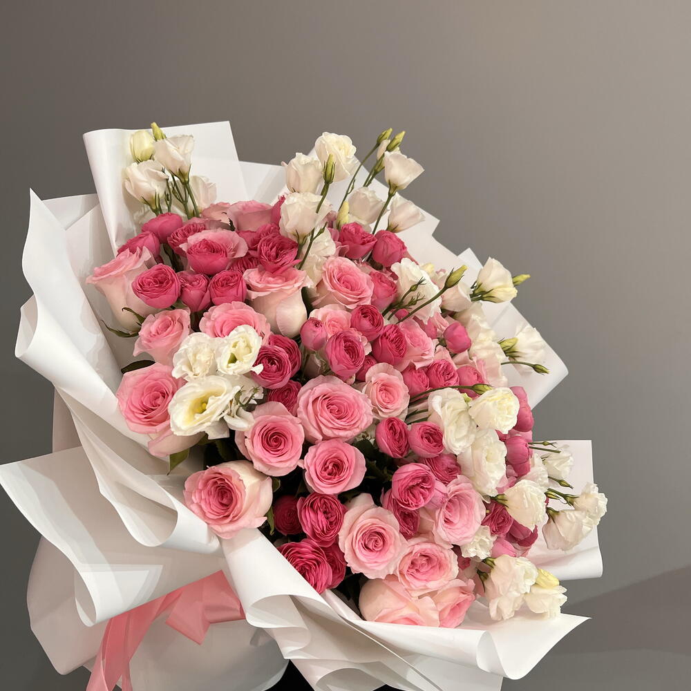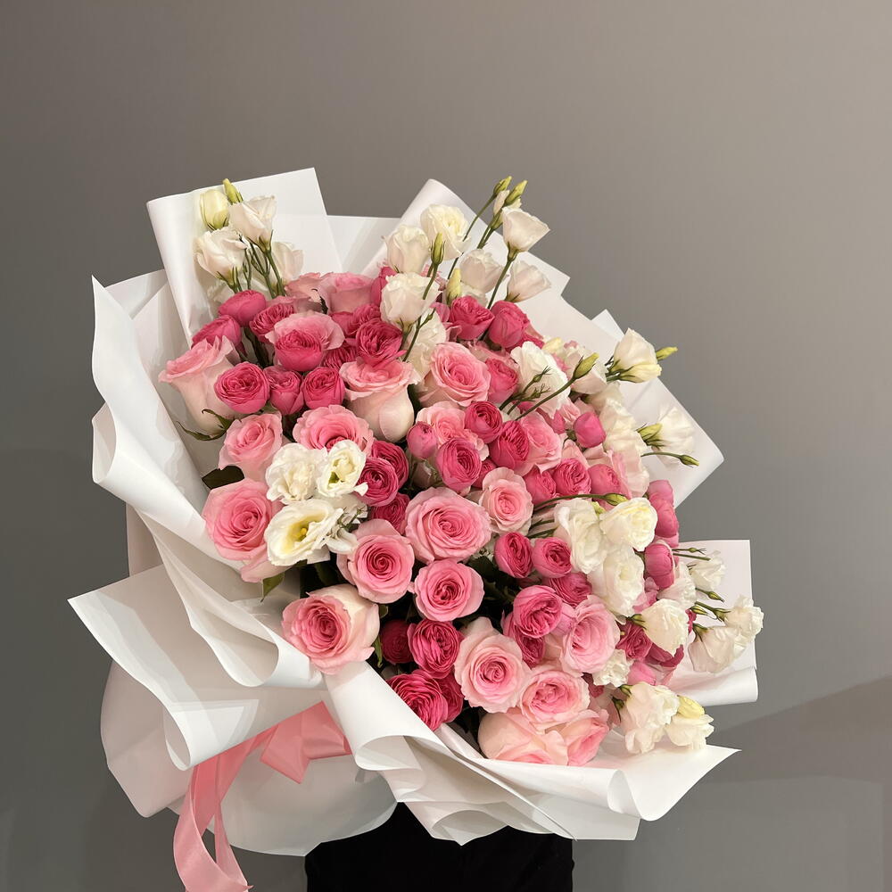 Лизиантус Белый - 10 шт. спрей розы - 10 шт. голландские розы 50 см - 25 шт.