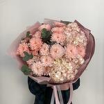 Гортензия - 2 шт. Хризантема кустовая - 4 шт. Эвкалипт - 1 шт. Упаковка - 1 шт.