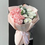 Гортензия - 2 шт. Хризантема кустовая - 3 шт. Эвкалипт - 1 шт. Оформление - 1 шт.