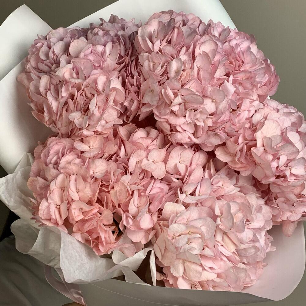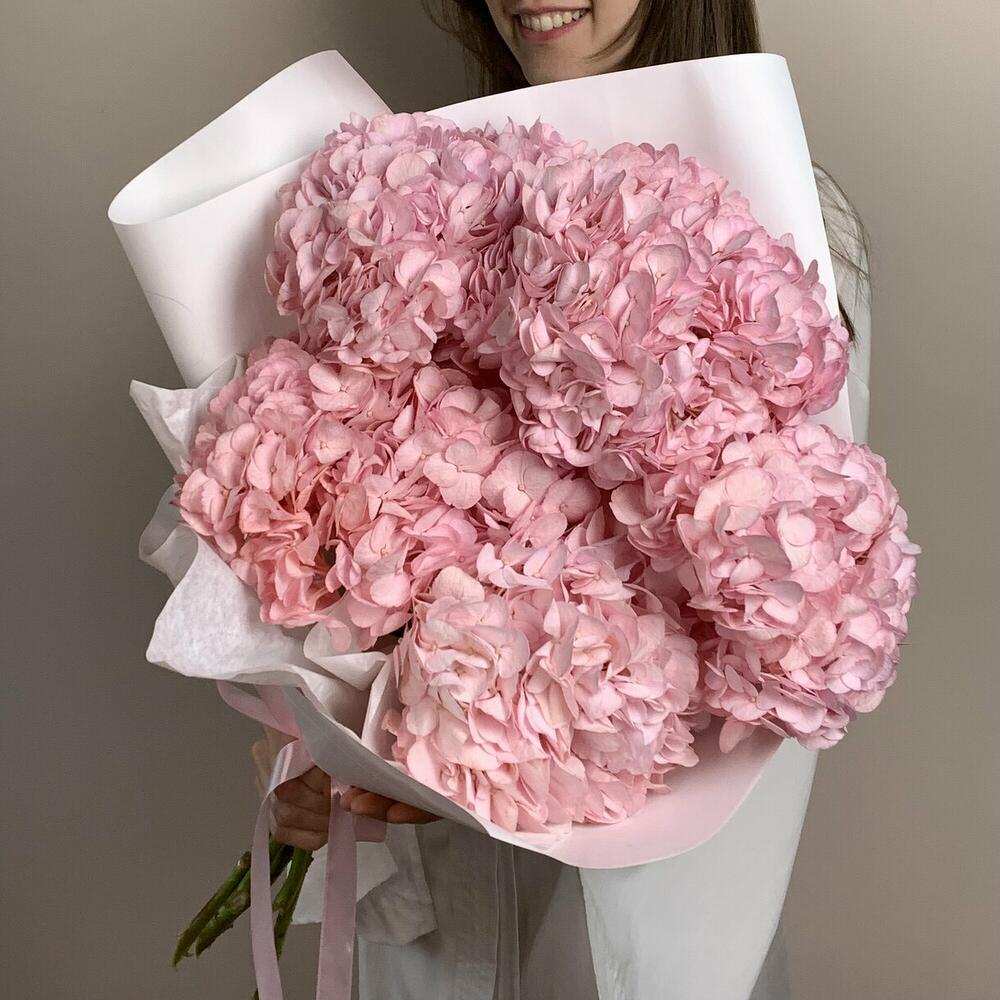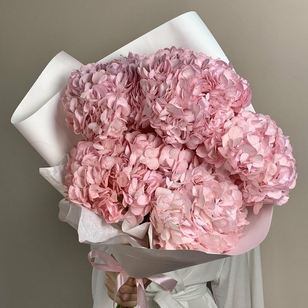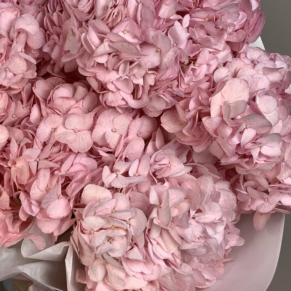 Нежный розовый букет гортензий