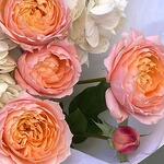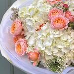 Гортензия - 3 шт. Роза кустовая пионовидная - 5 шт. Упаковка дизайнерская - 2 шт.