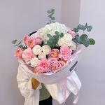 Гортензия - 1 шт. Эвкалипт - 1 шт. Кустовая роза - 4 шт. Диантус - 4 шт.