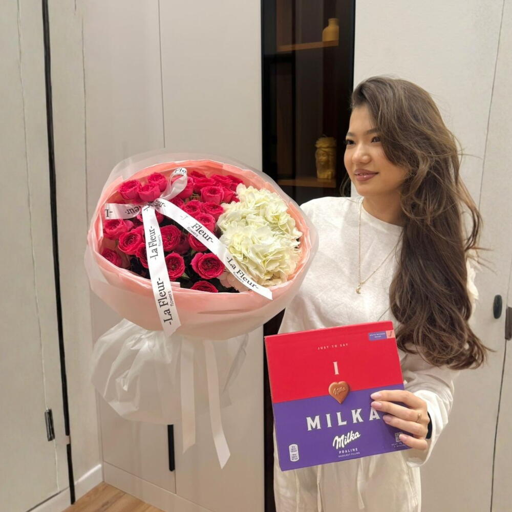 Нежный вкус» — кустовая роза, гортензия и Milka