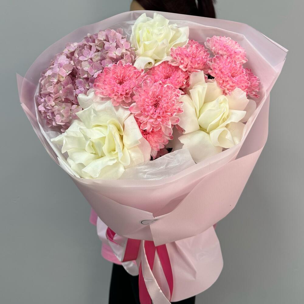 Гортензия - 1 шт. Хризантема кустовая - 2 шт. Роза - 3 шт.