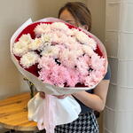 Воздушный букет из розовых и кремовых хризантем — воплощение лёгкости и нежности. Дарит тепло и искренние эмоции. 💕
