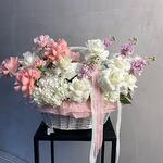 Гортензия - 2 шт. Маттиола - 4 шт. Диантус - 5 шт. розы - 13 шт.