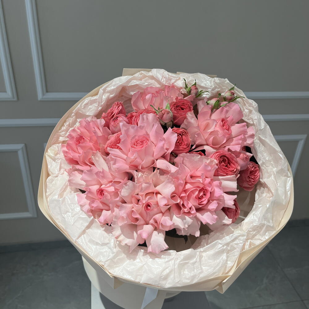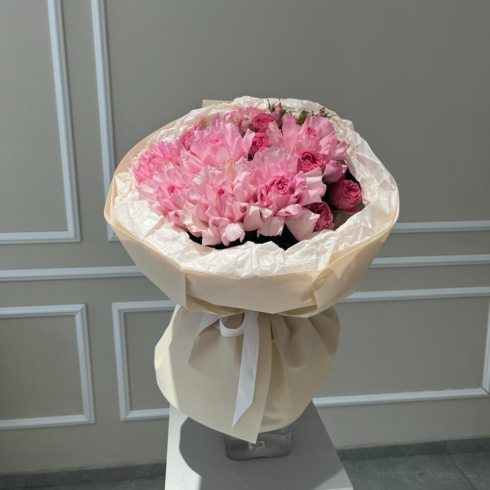 Шикарный, нежный букет с отличным запахом! Флорист со вкусом креативно оформил букет. Жена была в восторге! Букет полностью соответствовал фотке заказа. Спасибо большое!