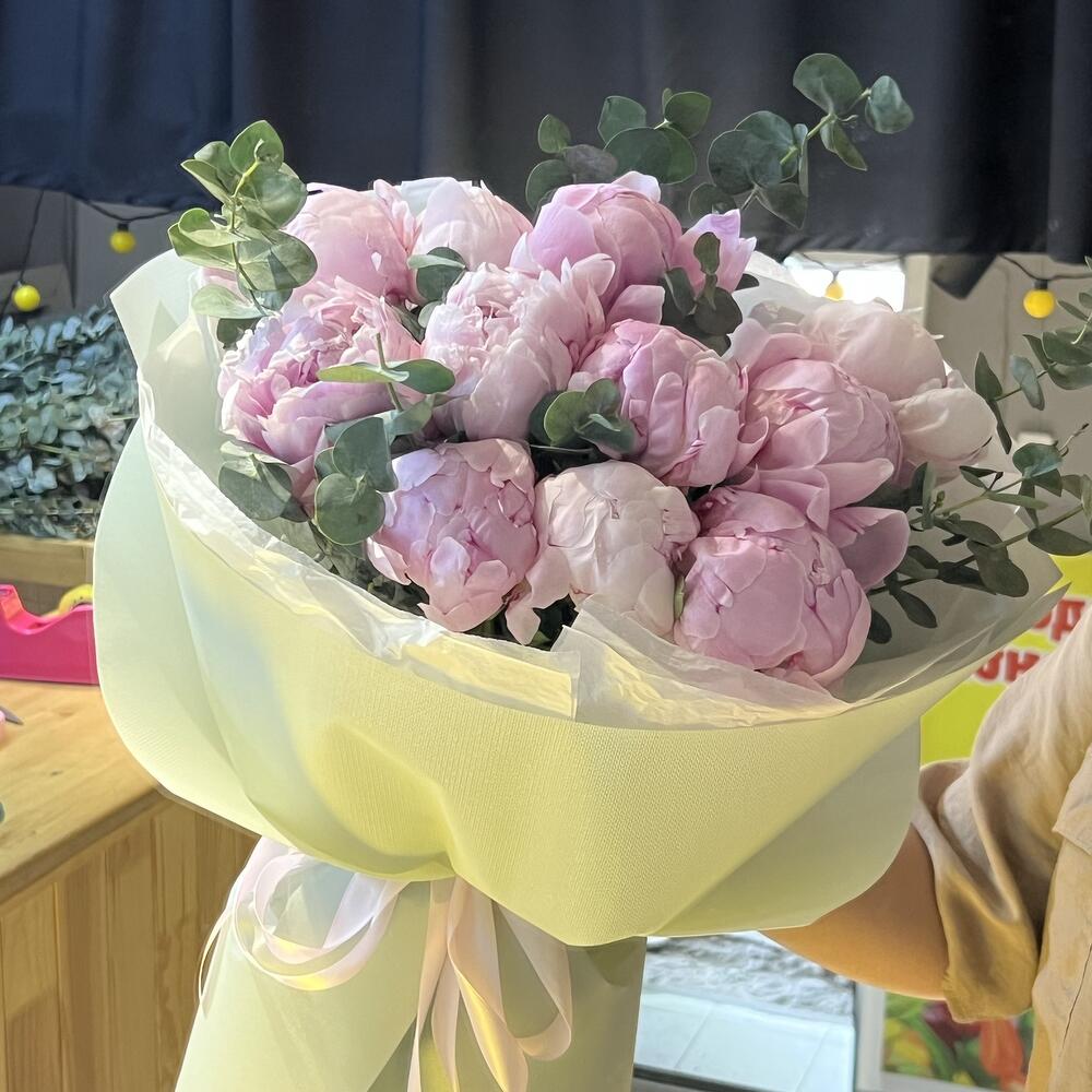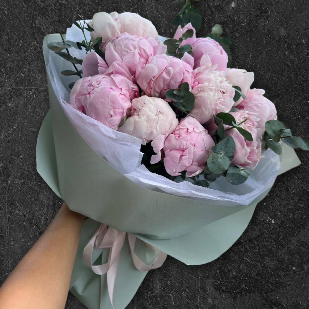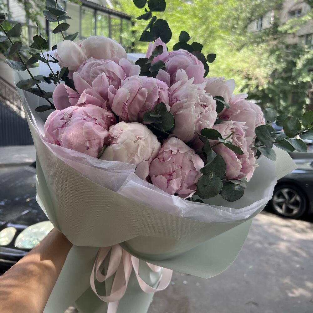 Лёгкий, утончённый и очень душевный букет, где каждая деталь продумана до мелочей. 11 пионов — символ искренности, красоты и внутренней гармонии. А веточки эвкалипта придают свежести, благородства и делают композицию особенно стильной. Пионы раскрываются постепенно, превращаясь в пышные ароматные облака, а эвкалипт добавляет текстуру и тонкий природный аромат. 💗 Идеален для: – романтического сюрприза, – нежного комплимента, – благодарности или «просто так».