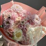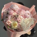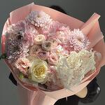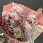 Гортензия - 3 шт. Хризантема кустовая - 2 шт. Эустома - 2 шт. Сухоцветы - 2 шт. Спрей роза - 5 шт. сборный букет цветов - 19 шт. розы - 3 шт. хризантем одноголовая - 3 шт.
