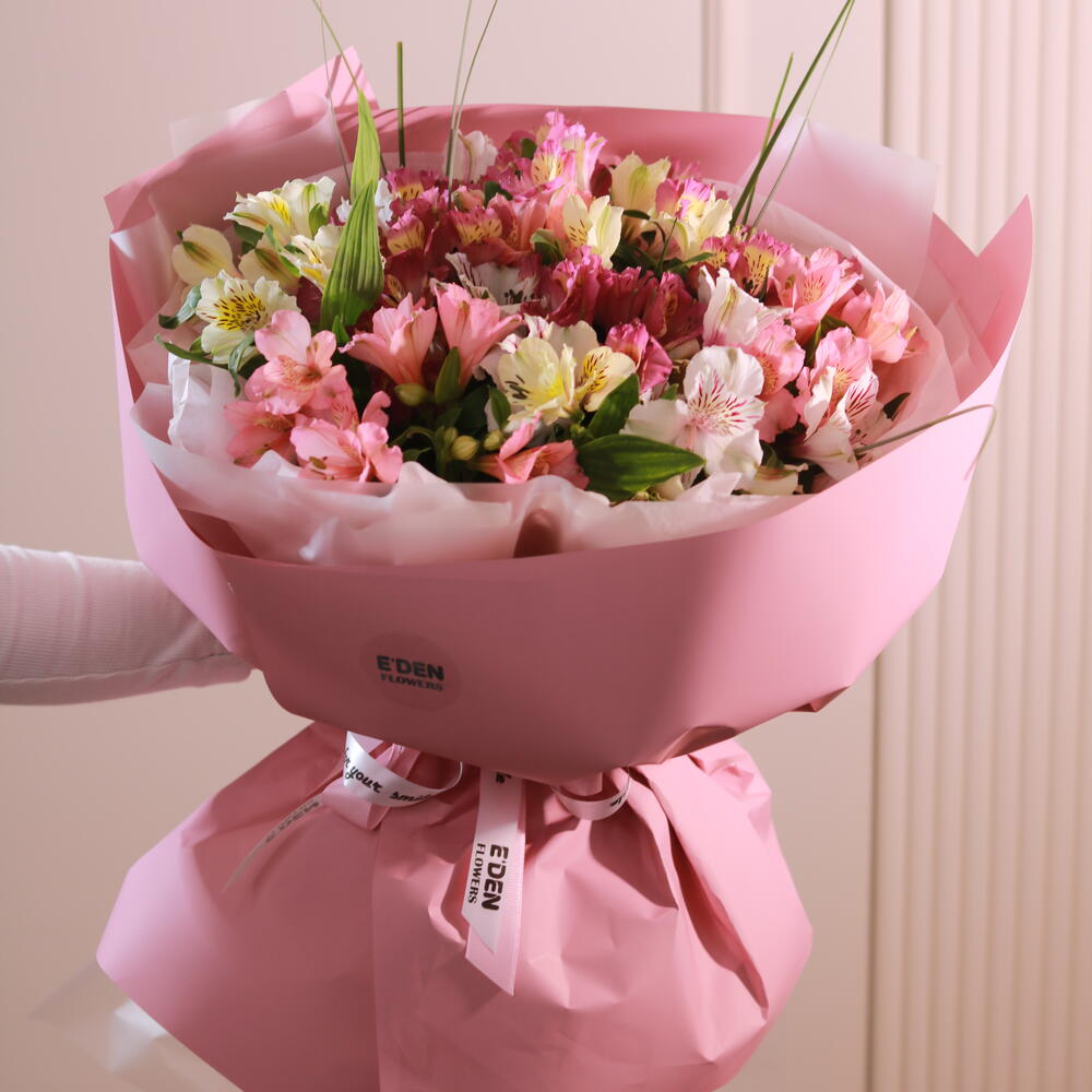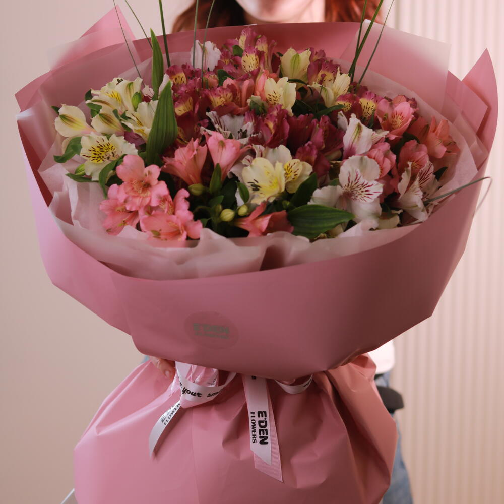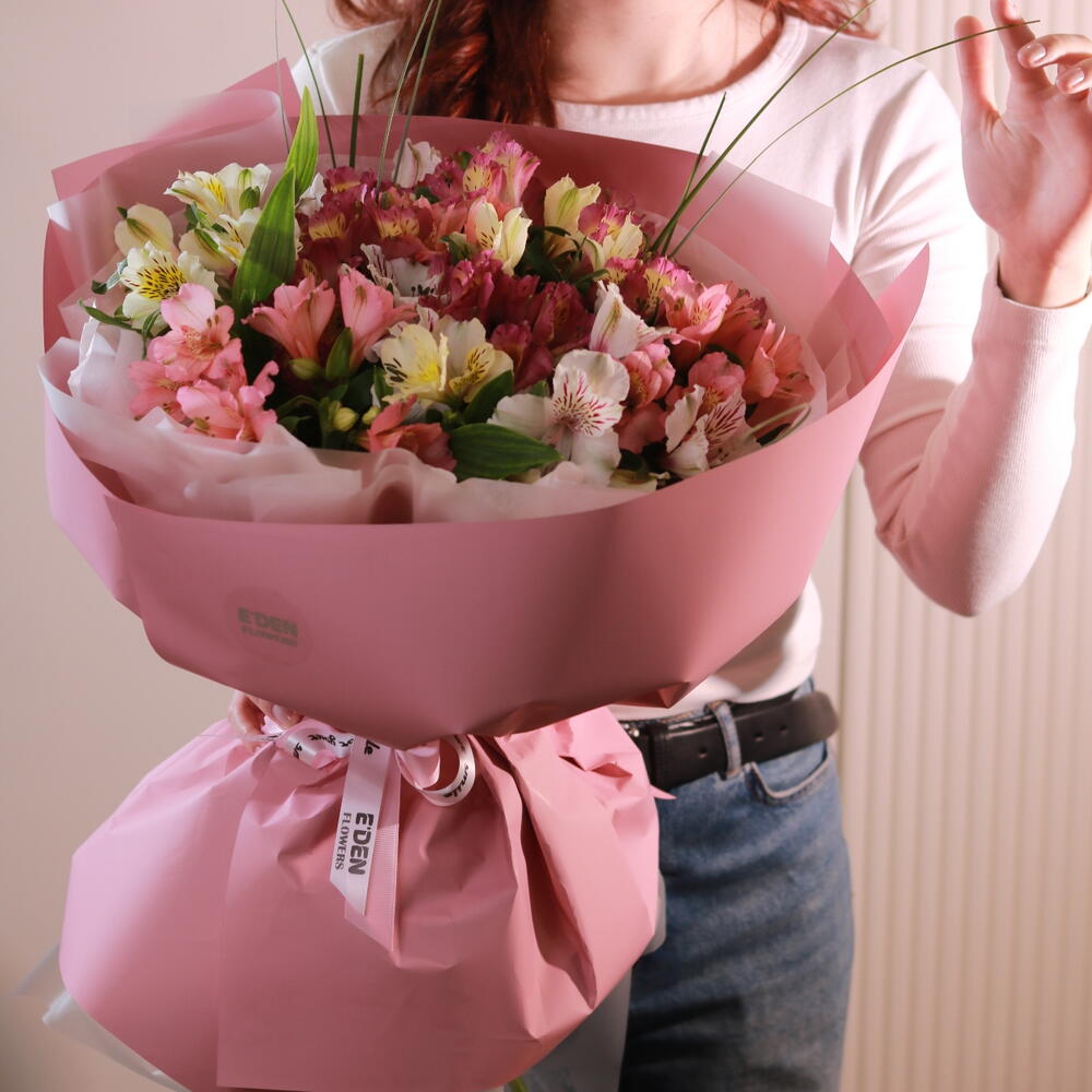 Альстромерия — нежность, которая радует дольше Сочный микс, объёмная сборка. Этот букет выглядит ярко, но не кричит — он про живые эмоции и настоящее внимание. Альстромерия ценится за стойкость и способность долго сохранять свежесть. Бутоны раскрываются постепенно, поэтому букет выглядит красиво не один день. Оттенок: нежный микс Характер: лёгкий, эмоциональный, жизнерадостный Стойкость: до 10–14 дней Идеальный вариант, если хочется подарить цветы «с настроением» — красиво, заметно и по-настоящему приятно.