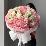Альстромерия - 5 шт. Гортензия - 4 шт. Гвоздика - 3 шт. Оформление - 1 шт.