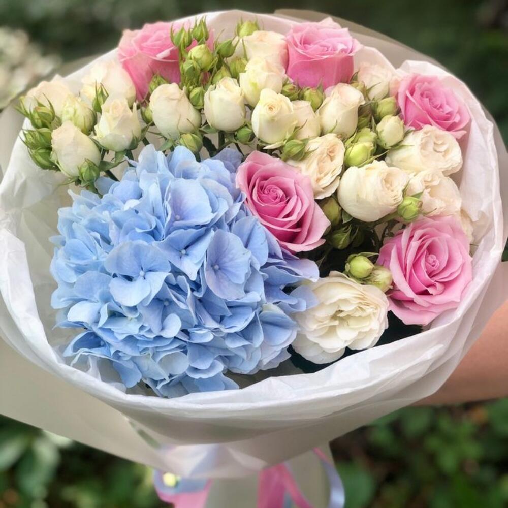 Гортензия - 1 шт. Роза - 5 шт. Спрей роза - 4 шт. аквабумага - 6 шт.