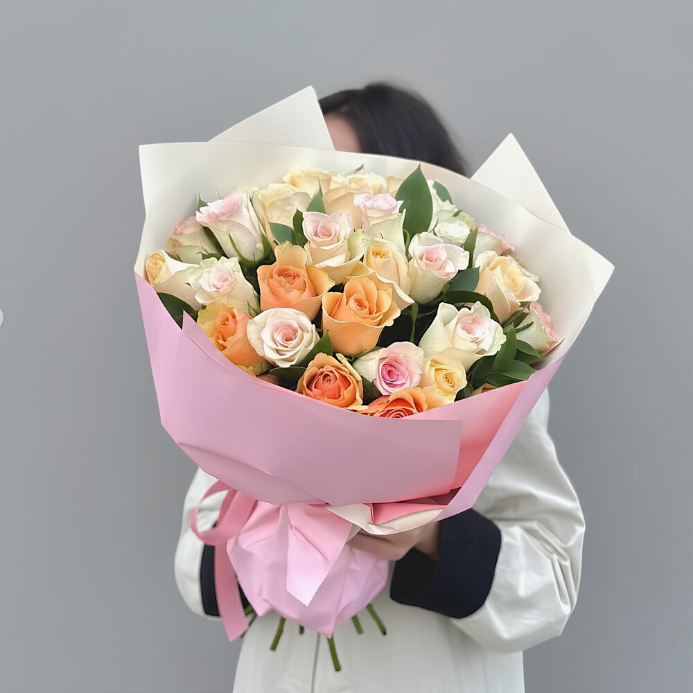 Этот восхитительный монобукет из 25 нежно-персиковых роз наполнит каждый момент особенной атмосферой. Как символ любви и настоящей женственности, эти изящные розы станут персональным посланием вашим любимым. Пусть каждая лепестка дарит умиротворение и счастье!