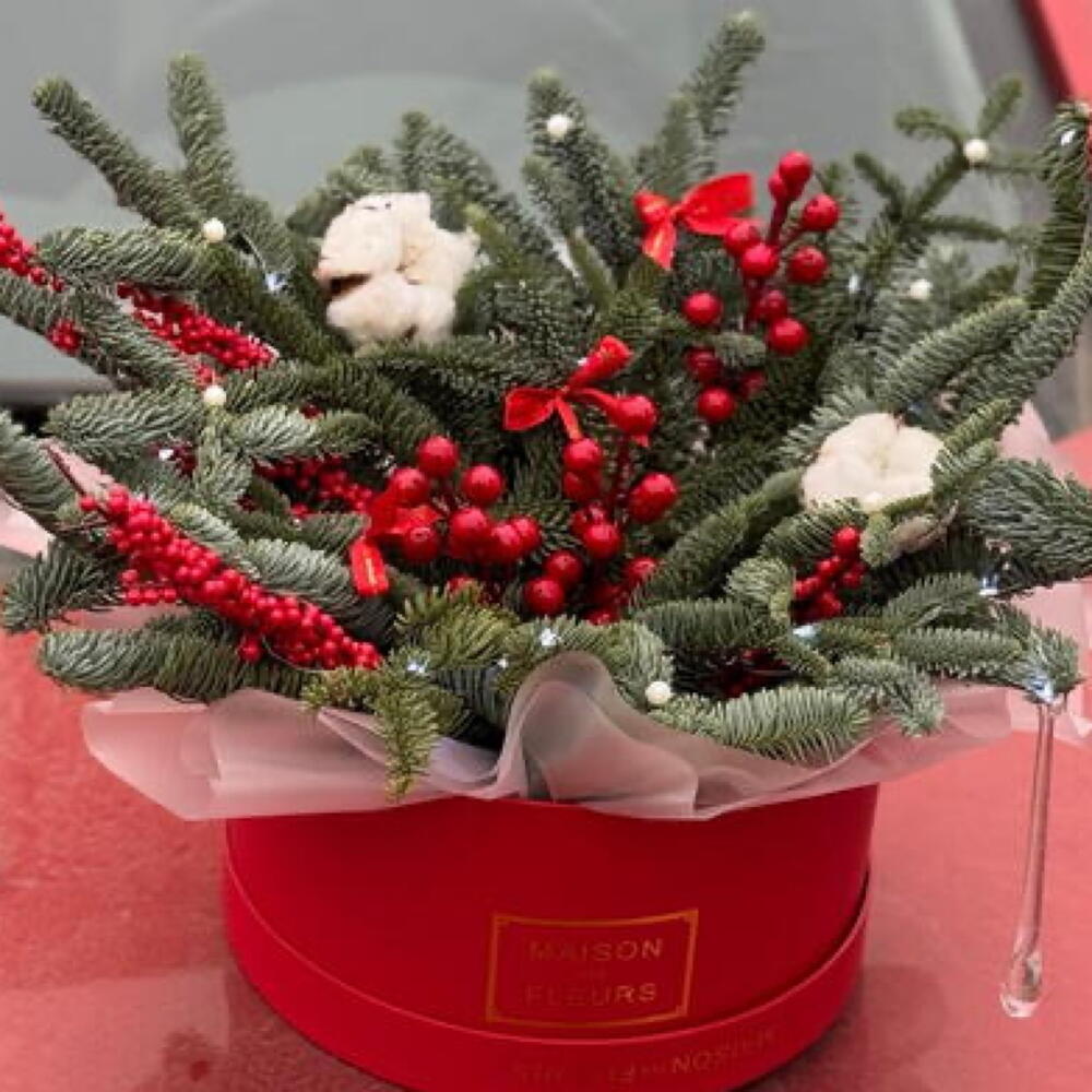 Хлопок - 3 шт. Илекс Красный - 3 шт. Нобилис - 2 шт. Игрушки елочные - 3 шт. гирлянда новогодняя - 1 шт.