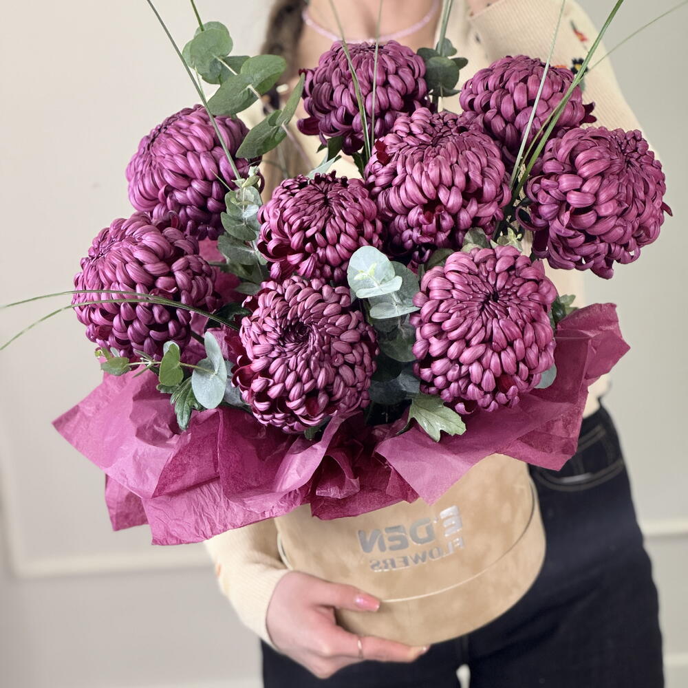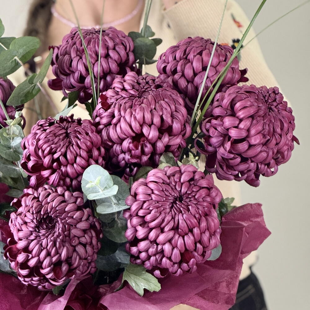 Эвкалипт - 3 шт. хризантема бигуди - 9 шт.
